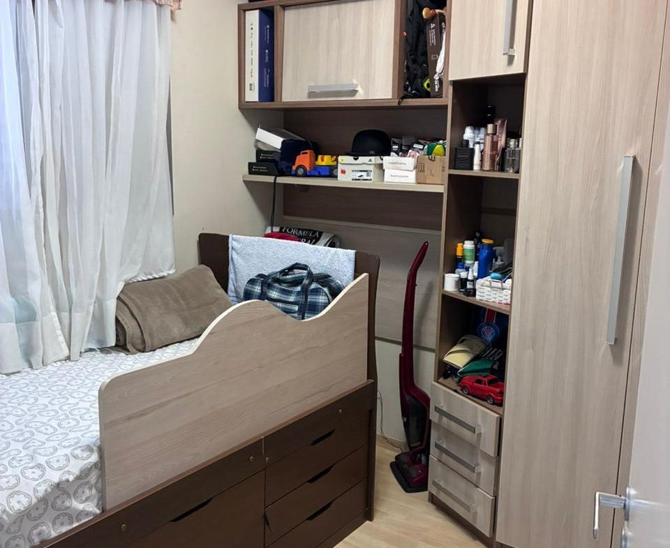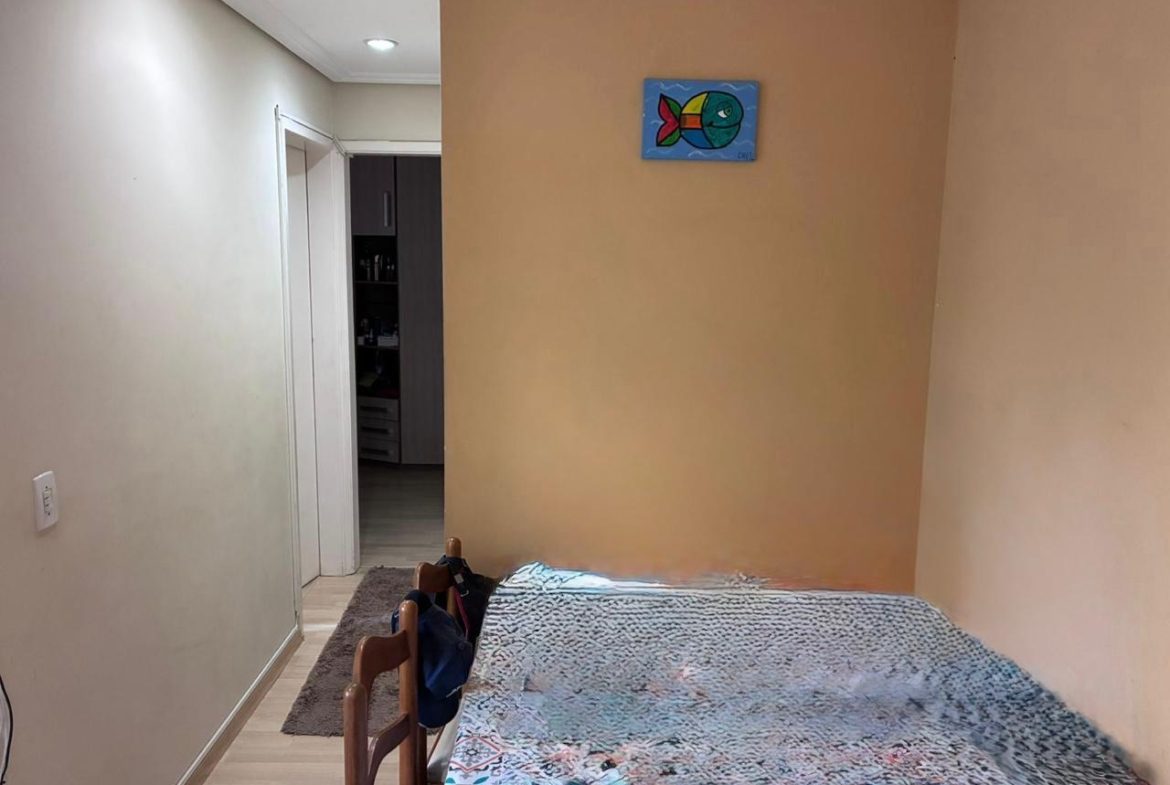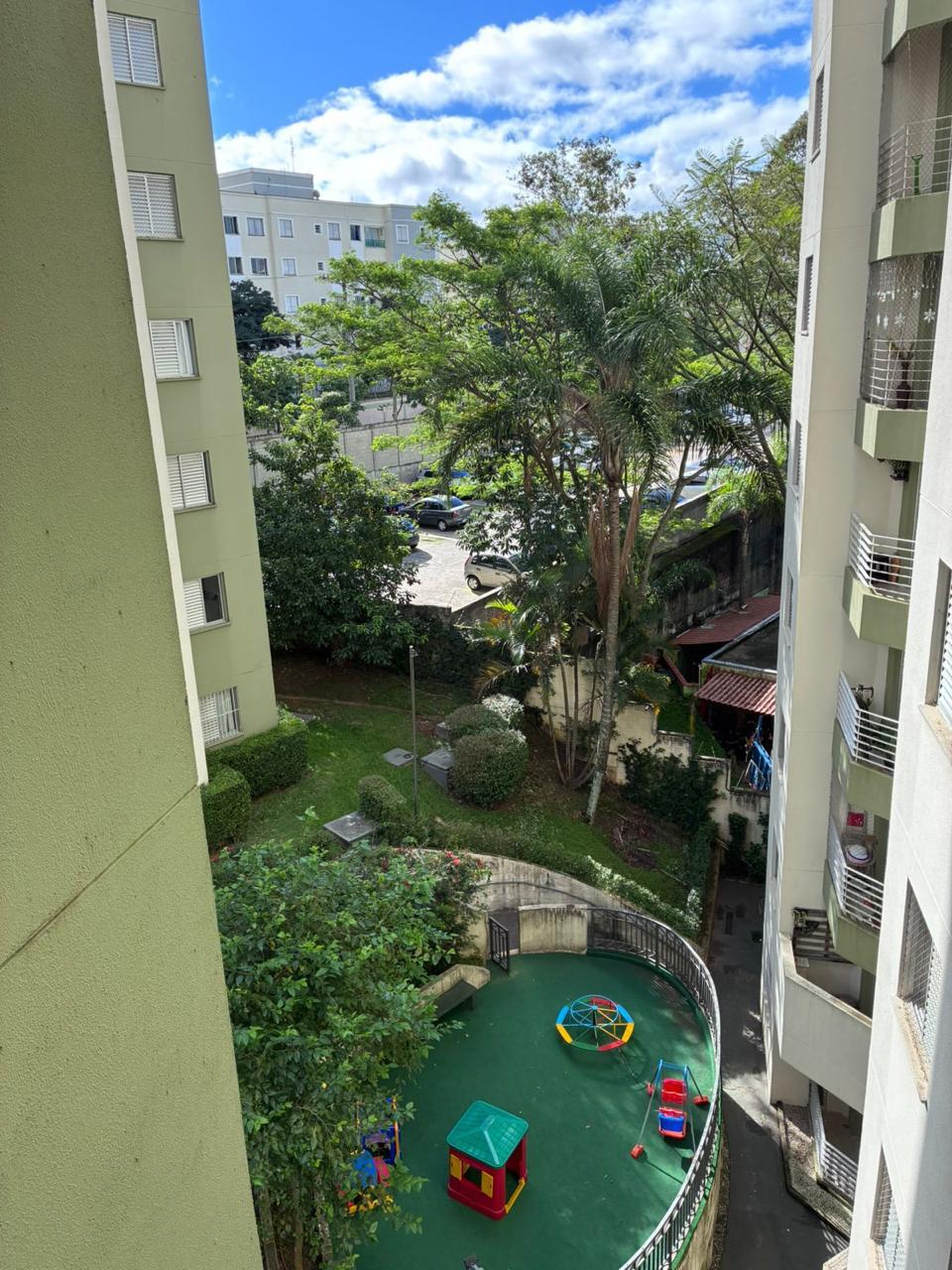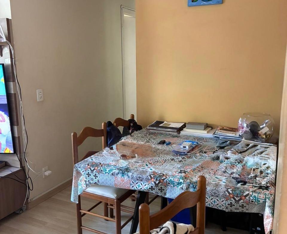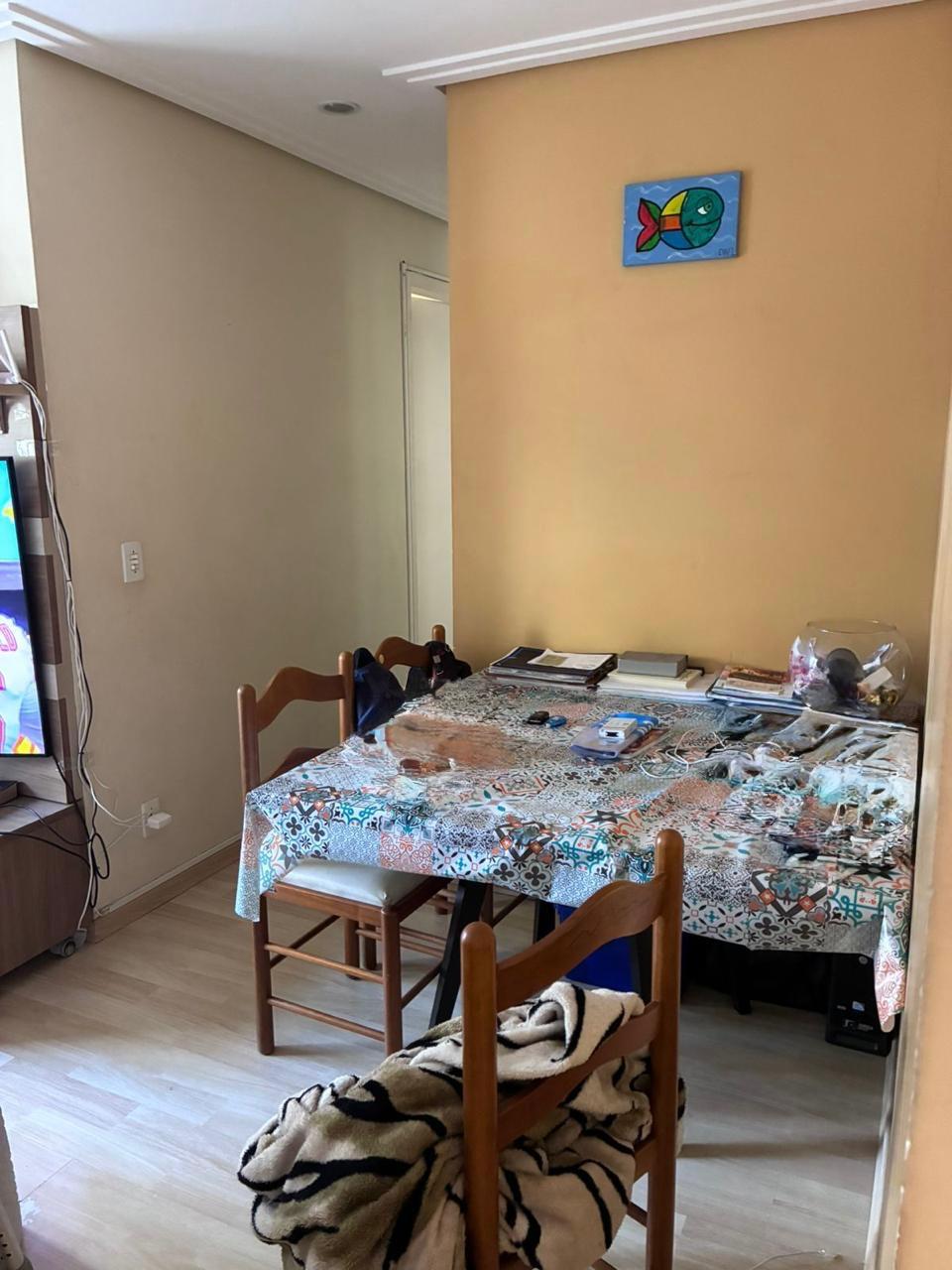 Apartamento de 2 dorms, 1 banheiro, 1 cozinha, 1 área de serviço, 1 varanda, 1 vaga de garagem, no 5o andar. Condomínio com piscina, churrasqueira, academia, playground, quadra e mercadinho. Sem IPTU e condomínio no valor de R$ 500,00.
