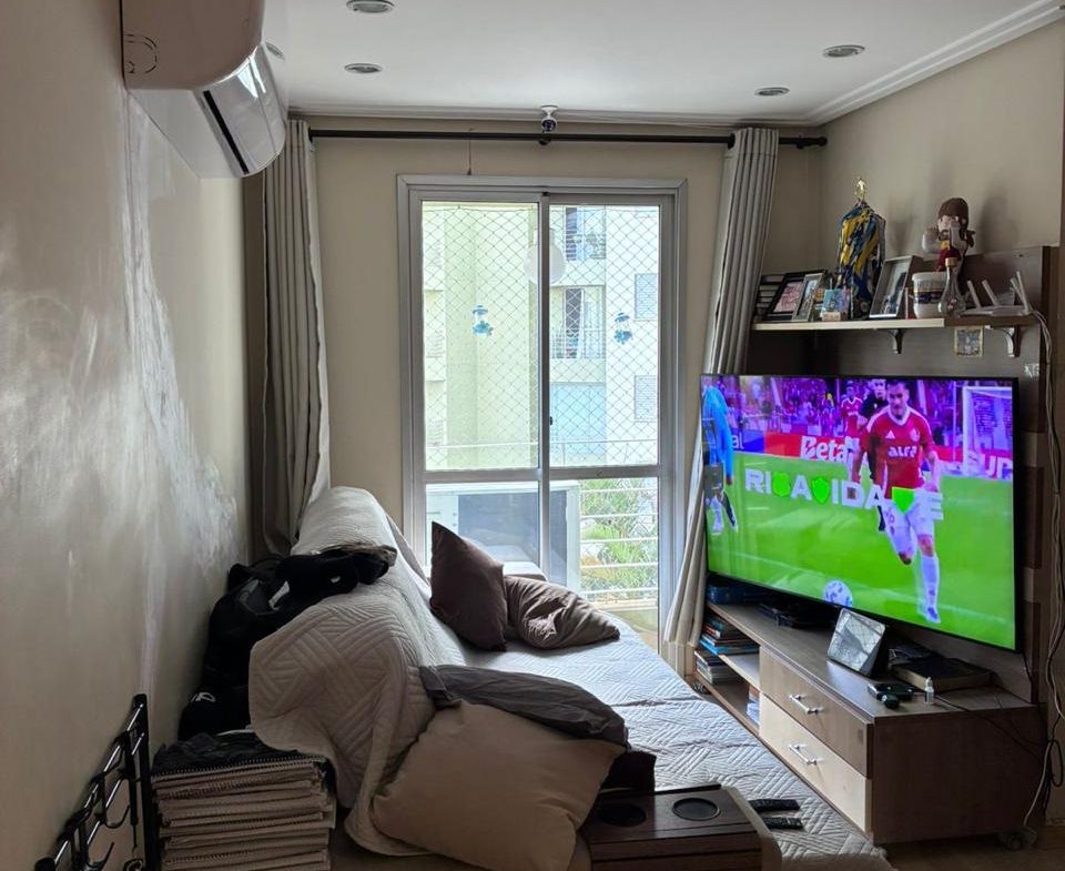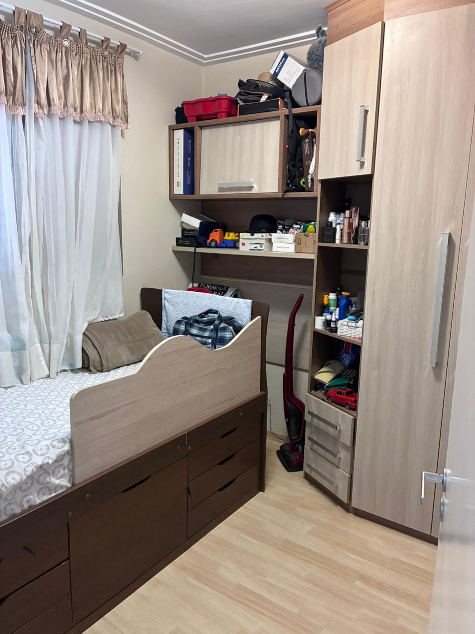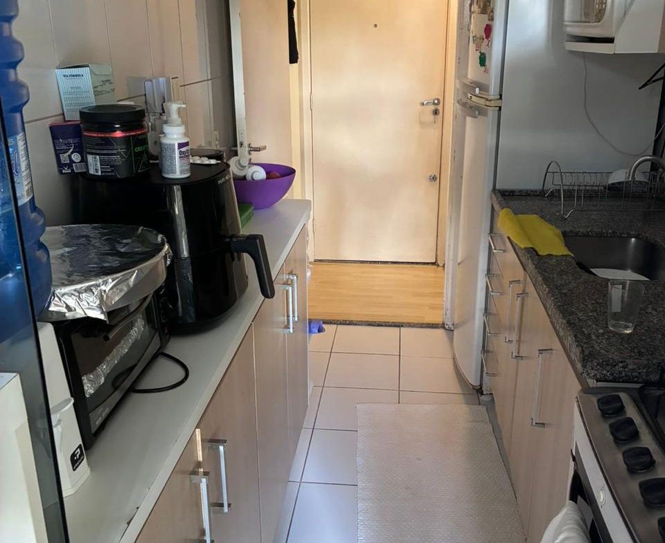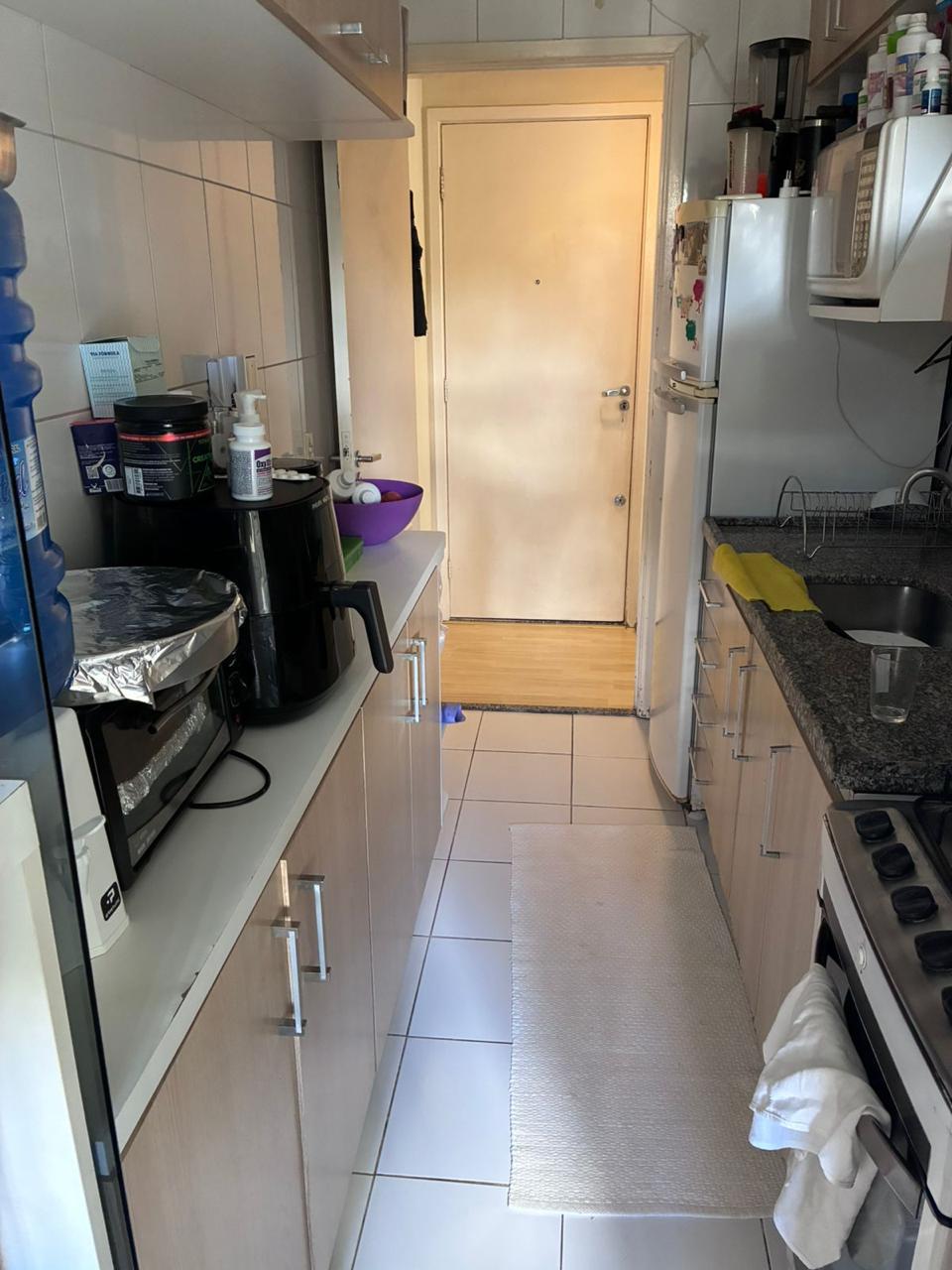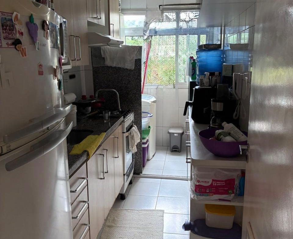 Apartamento de 2 dorms, 1 banheiro, 1 cozinha, 1 área de serviço, 1 varanda, 1 vaga de garagem, no 5o andar. Condomínio com piscina, churrasqueira, academia, playground, quadra e mercadinho. Sem IPTU e condomínio no valor de R$ 500,00.